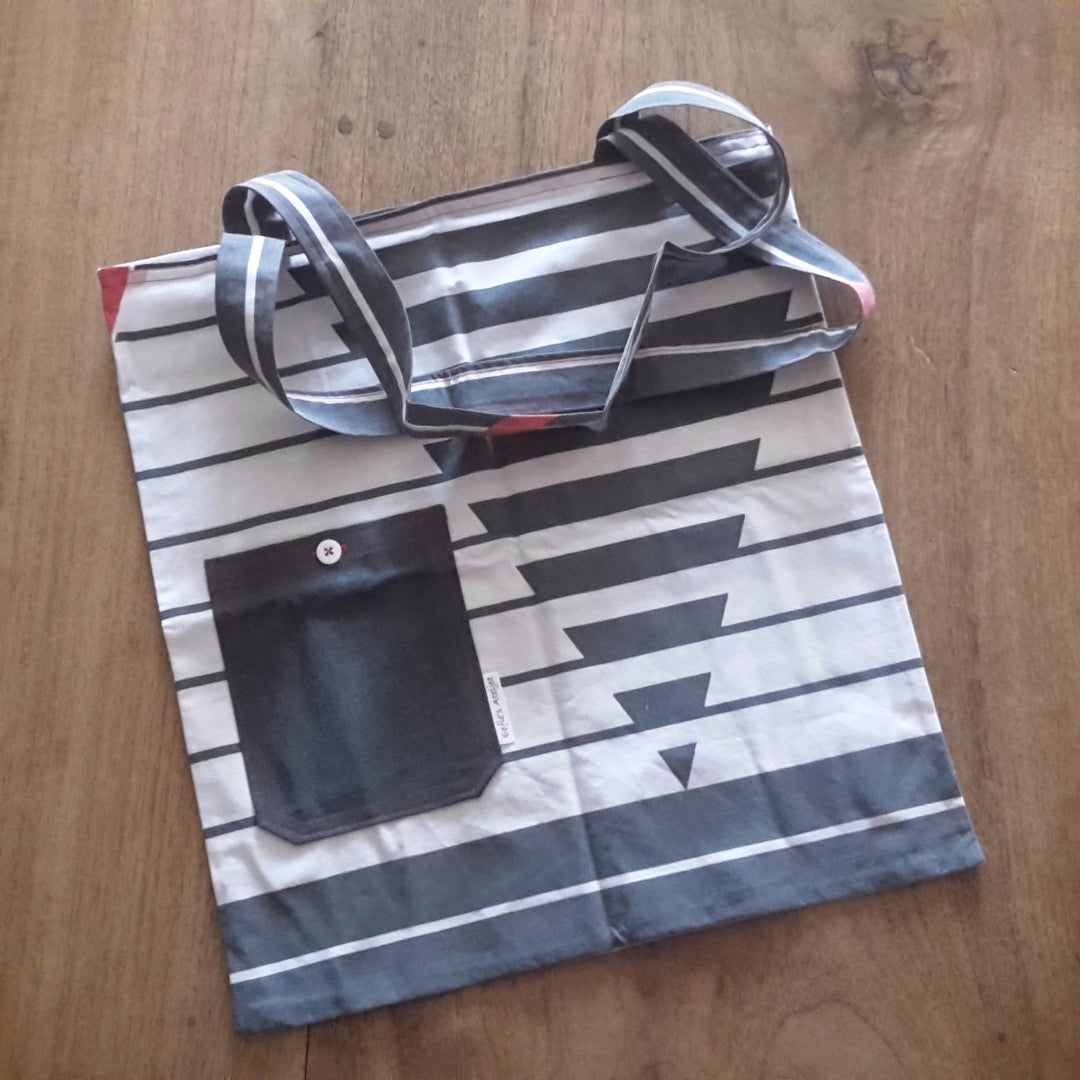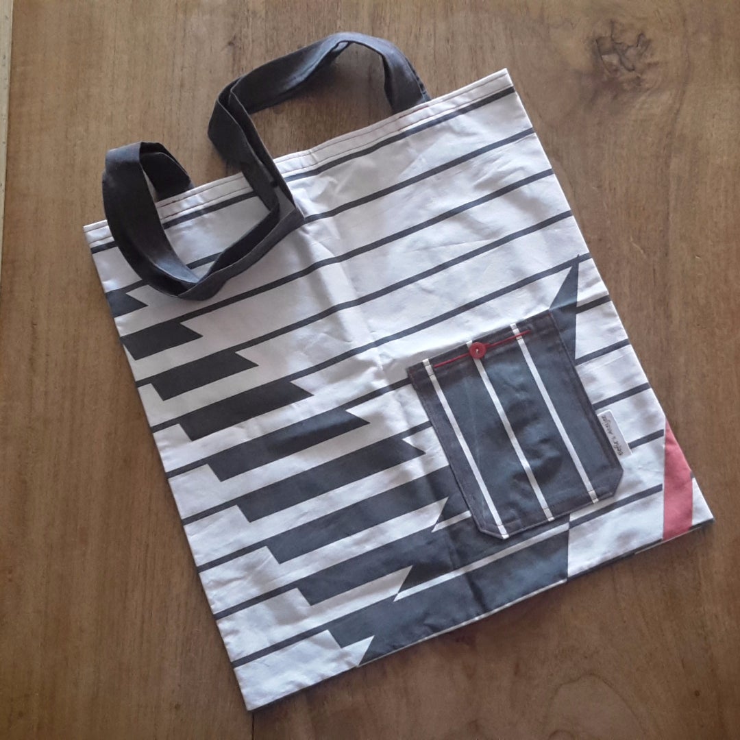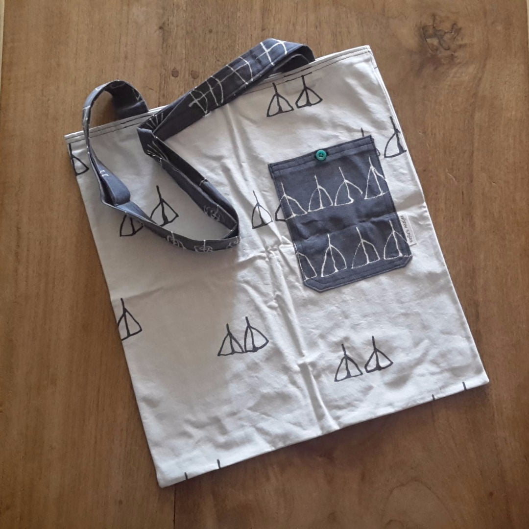 Model ODT; Handige katoenen tas voor erbij; aan de buitenkant voorzien van klein vakje met knoop.